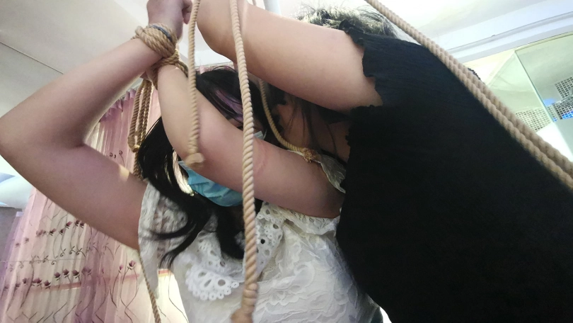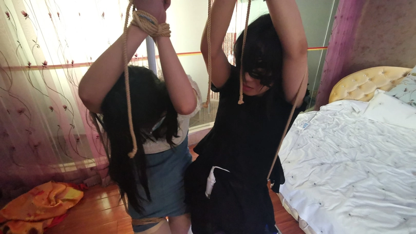 【JS】琳洛-凌熙 双女单腿吊缚 互相颈部亲吻挑逗 快乐棒刺激