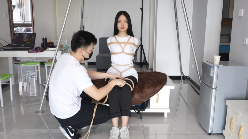 小姐姐穿上红色的情趣内衣,被绑成紧紧的日式五角星,在被吊起只能脚尖踮地勉强保持平衡。却还要和恶魔的小爪爪斗智斗勇。