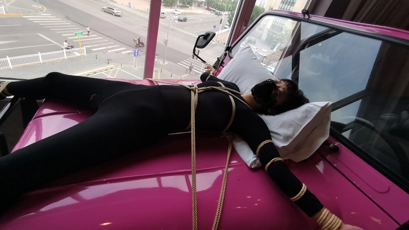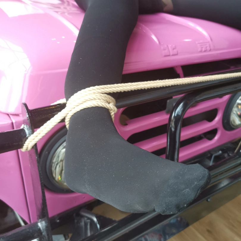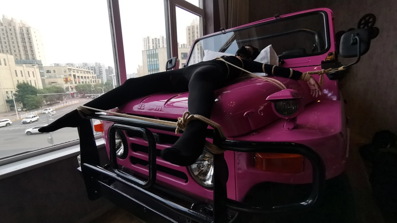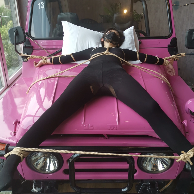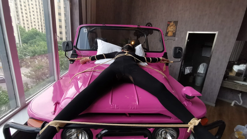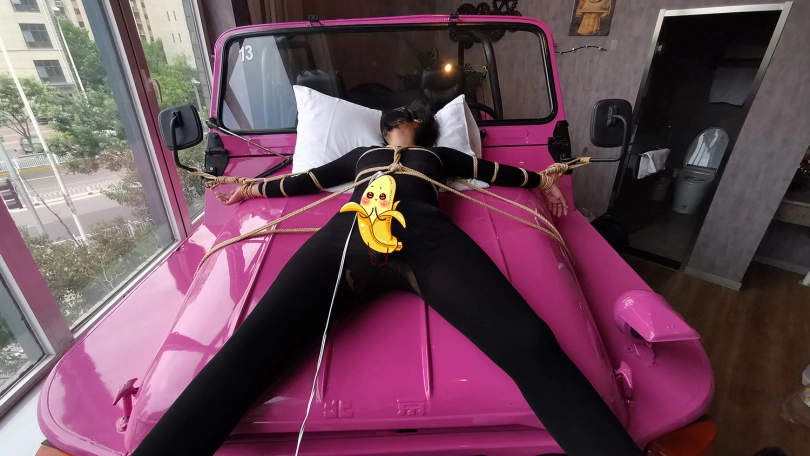 【JS】琳洛 车盖大字捆绑 黑色紧身衣 快感棒刺激