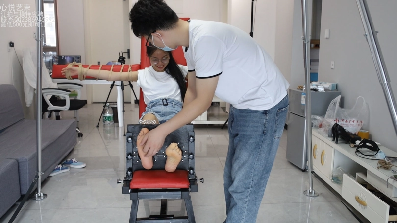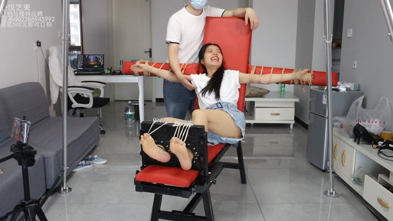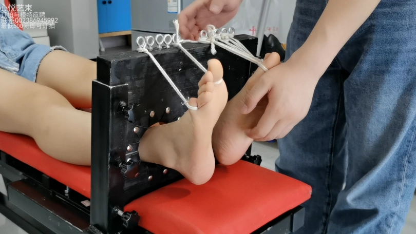 身着牛仔热裤白衬衫的青春少女欣然,被某知名恶人抓到,捆绑在了某恶人设计定制的老虎凳上面,每一根手指脚趾都被绳索束缚起来,完全没有挣扎的余地。接下来迎接她的是什么呢?当然是酷刑的折磨。