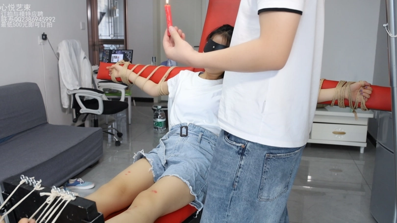 意外发现欣然腋下才是她全身最敏感的地方啊,每次挠腋下的时候都是她挣扎最厉害的时候,为了更好的效果,后期蒙住她的眼睛,让她没法看到接下来发生什么,悄悄点了跟蜡烛,每一次滴下去都是一阵抽搐和尖叫。就很爽。
