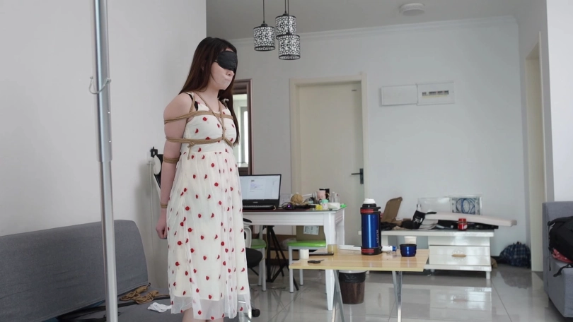 先封嘴后上绑,欧式直臂捆绑,绑上腿,膝盖,脚,升华的美腿就此诞生……
