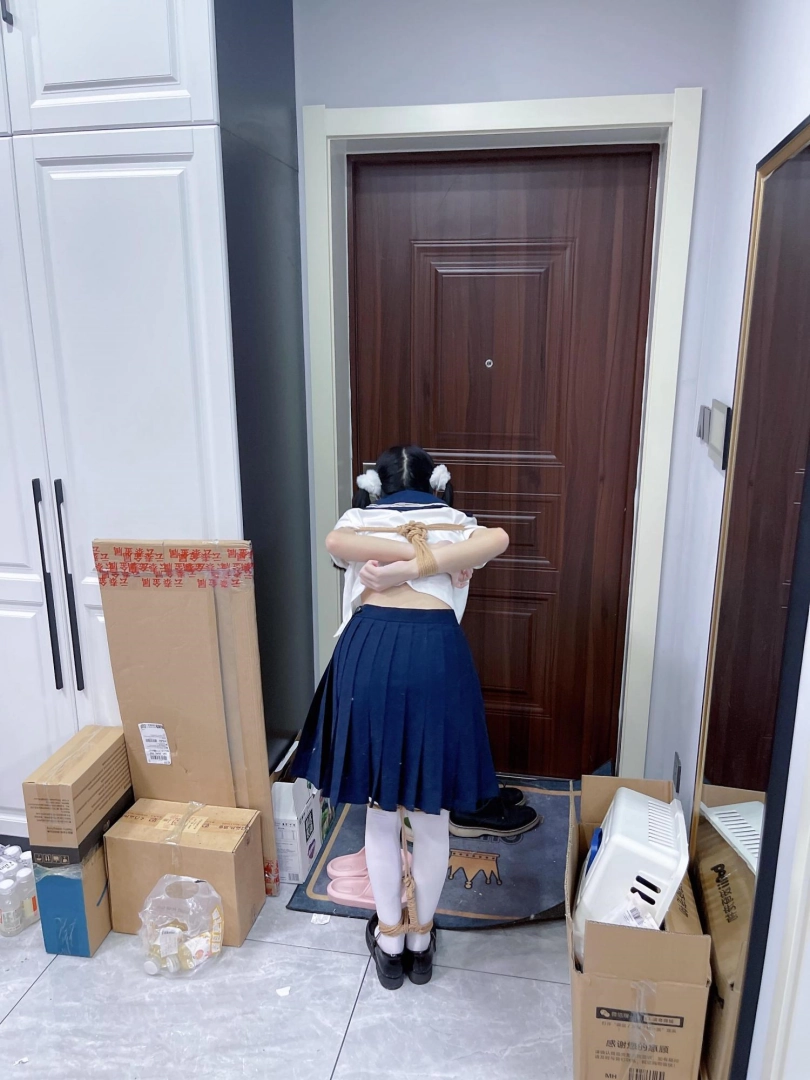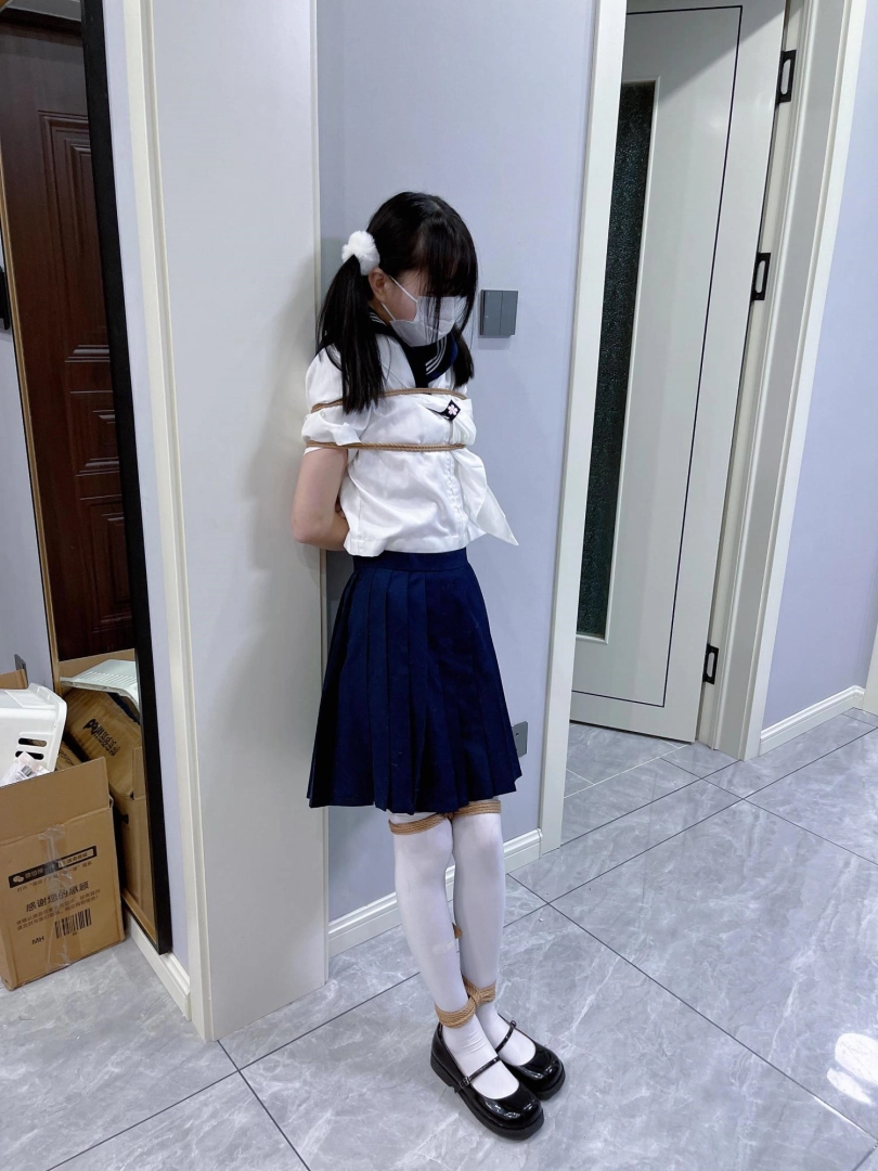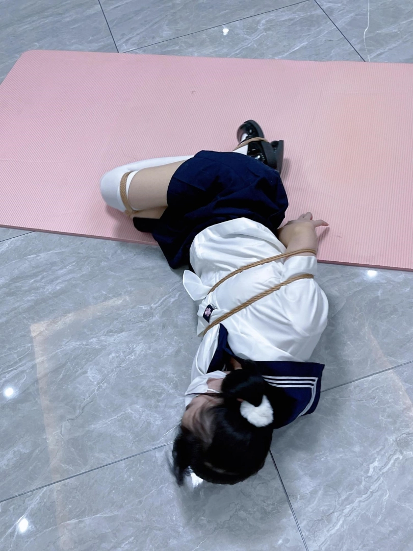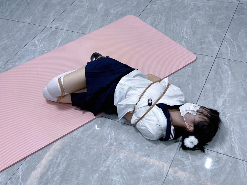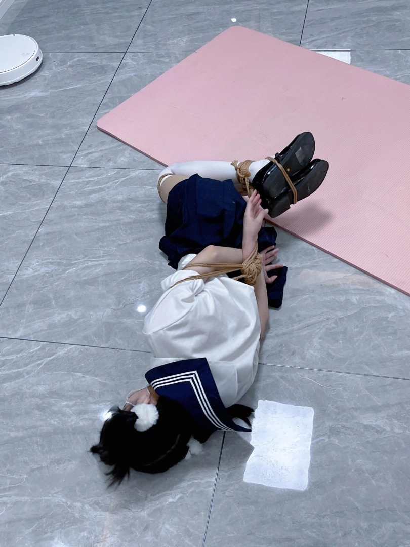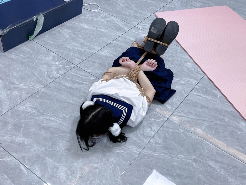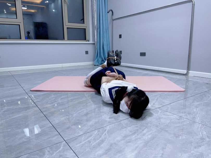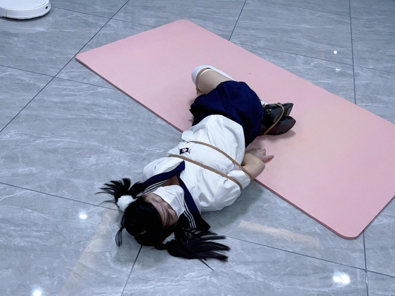 茶茶出游回家后没有关好门,坐到床上后感觉有点困,衣服都没换便躺下睡觉了。 这时坏人悄悄溜进来准备窃取钱财,看床上躺着一个人,便以防后患将茶茶绑了起来(绑法:日式小高手,并拢绑住脚腕)。