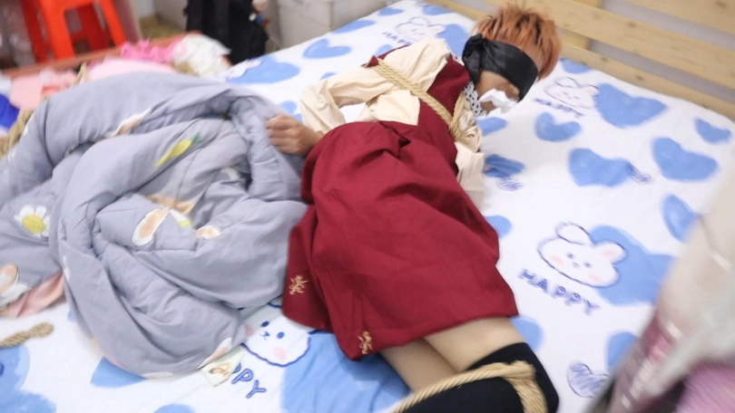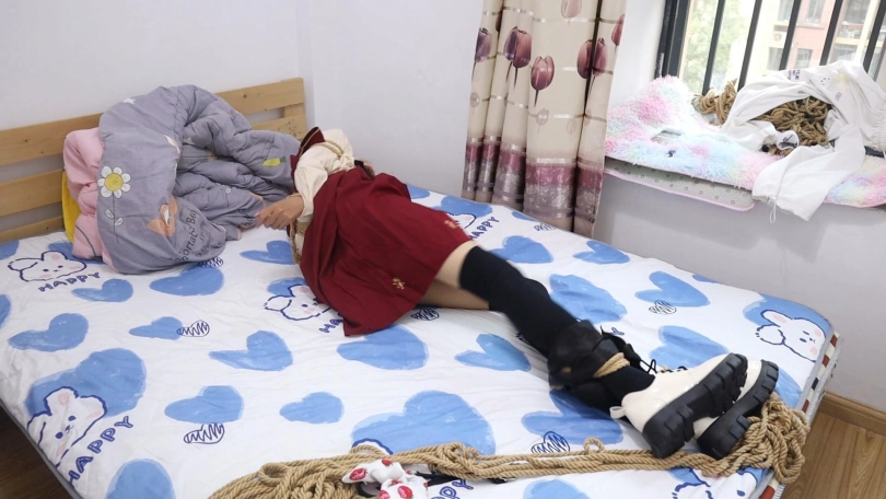 正着绑玩反着绑,然后再把腿绑在栏杆上自己弄着玩 直到解开为止