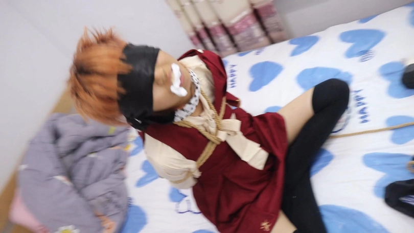 【荷约】 拒绝袜子塞嘴的橙毛少女被强制塞嘴欺负并绑在栏杆,拒绝欺负也可以 除非你自己能解开
