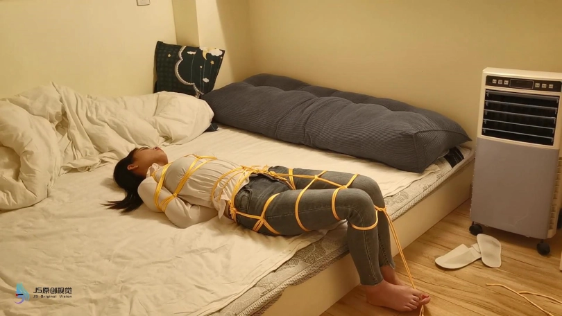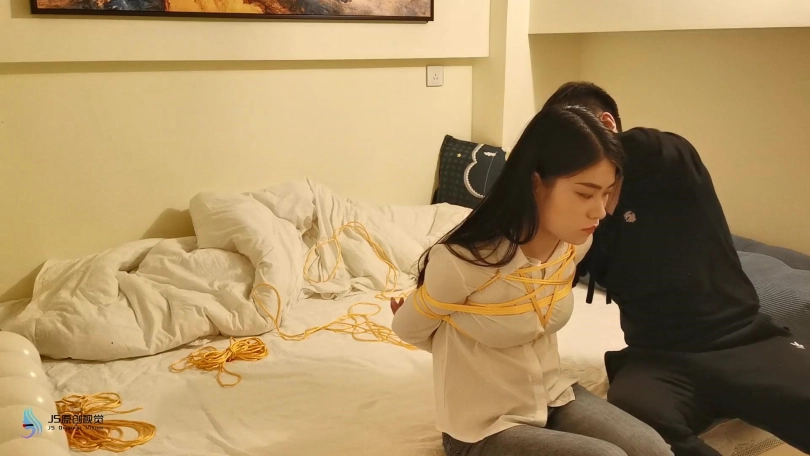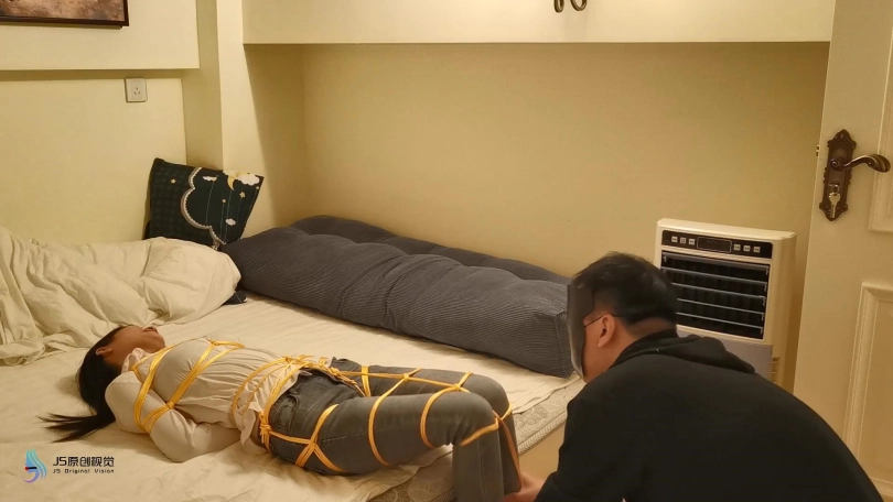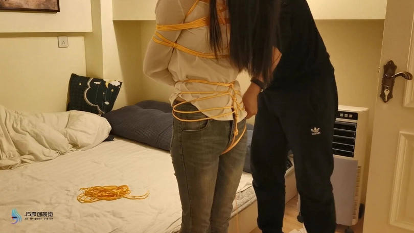 【JS】小冷 白衬衫牛仔裤 裸足 金色丝绳紧缚