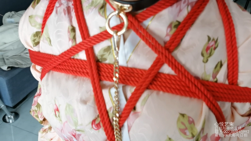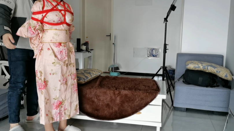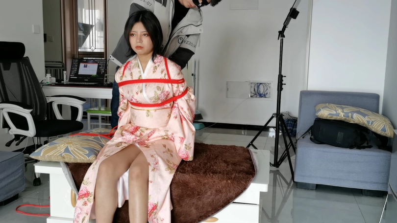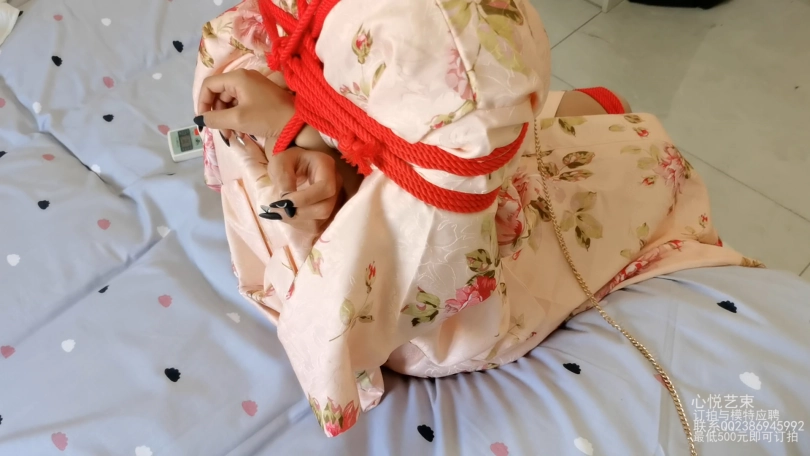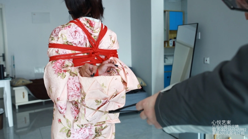 【心悦艺束】日式和服+超短脚镣的牵引调教