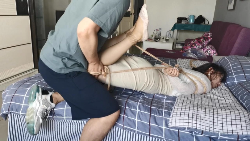 很好奇,每次把艾可捆绑好后,让她试着自行挣脱,她总是习惯性的顺便把自己的袜子脱掉,这是什么操作?方便脱困么?下次让她穿连裤袜,看她怎么脱。