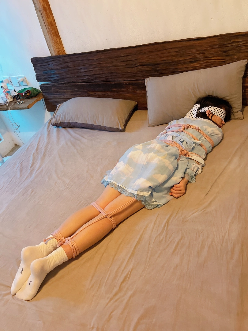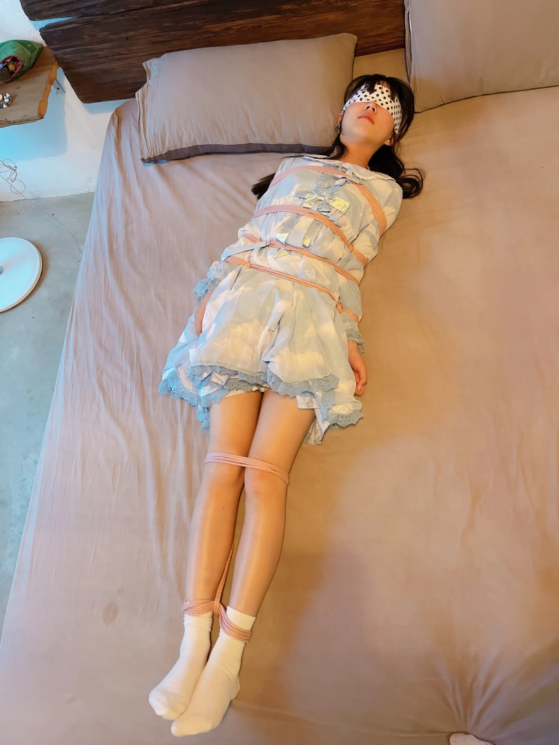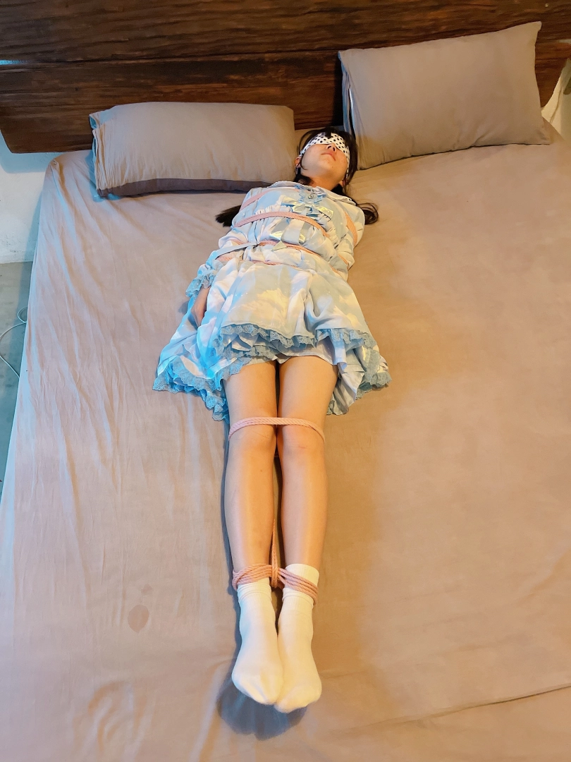 把茶茶用“立正”的姿势呈“l”字型绑好,仔细抚摸挠茶茶的小白袜脚底~然后脱下茶茶的小白袜整齐的摆放在一旁、甚至把茶茶的脚趾都并拢起来绑在一起固定在床尾,用手指、刺轮、梳子等各种各样的挠痒道具折磨茶茶粉嫩的脚心。同时也好好照顾了茶茶怕痒的腋窝。茶茶几乎疯了一样的笑着、拼尽全力的挣扎着,但无济于事:在脚趾都绑住的情况下,任何挣扎都是徒劳,茶茶只能绝望的忍受着让她崩溃的痒感一波又一波的刺激着她的大脑...