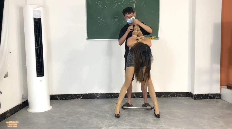 素素真空效果女神裙欧式捆绑拉着头发带着大号口球求饶,跺脚!!! 一切没有用, 就是放置着!!