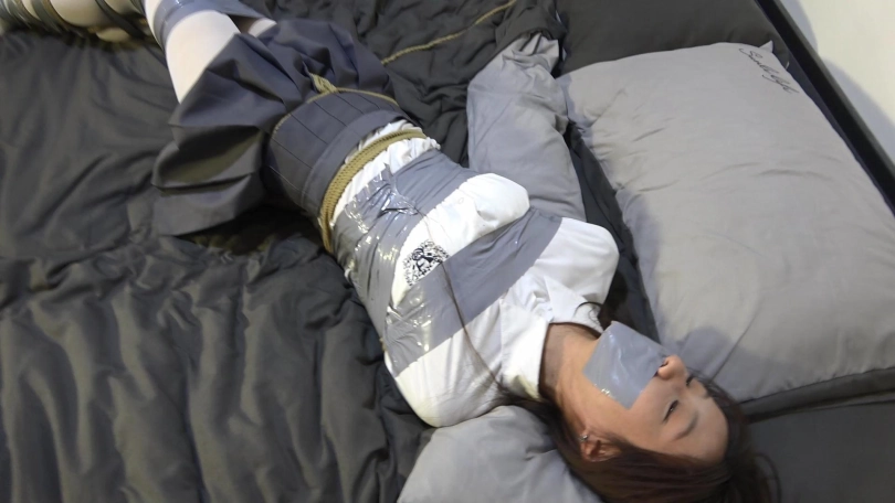 小华家中,小华捆绑女老师(嘴巴粘住),并挠女老师,让女老师自己挣扎。