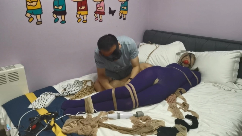 【JS】妙彤 紫色丝袜连体衣丝袜捆绑丝袜套头马具型口塞棒棒强制高C