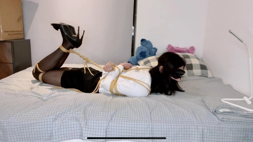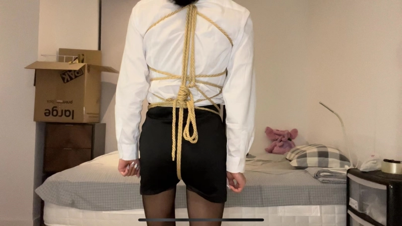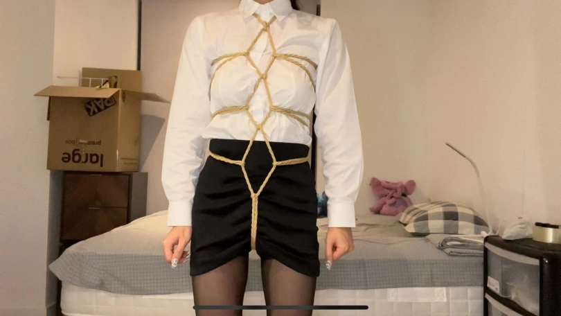 OL风格哈。视频分为三部分(开头有彩蛋“柯柯打屁股”,因为上次视频比例处理不当柯柯的承诺兑现),第一部分是大概8分钟的菱缚自绑,第二部分是手背在身后戴上手铐(也许是展示身材?柯柯也不知道拍了这一段目的何在),最后是床上驷马捆绑挣扎,后面因为连着脚裸的绳子收的太紧结果把上半身的束缚给拉脱了,以后柯柯在捆绑的时候会注意的!
