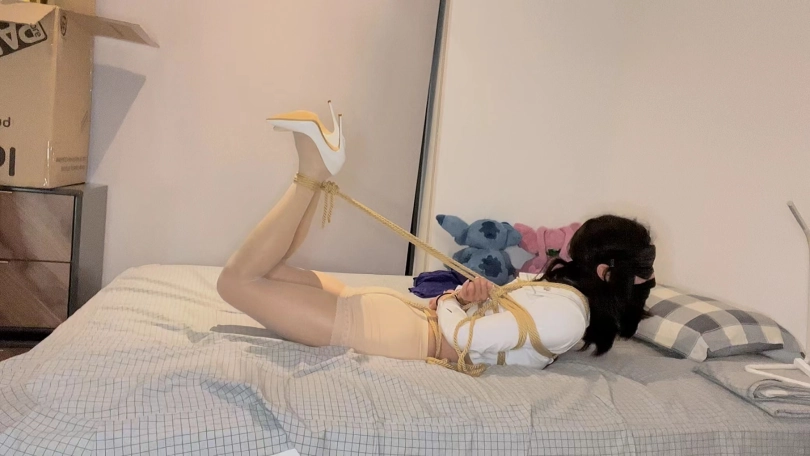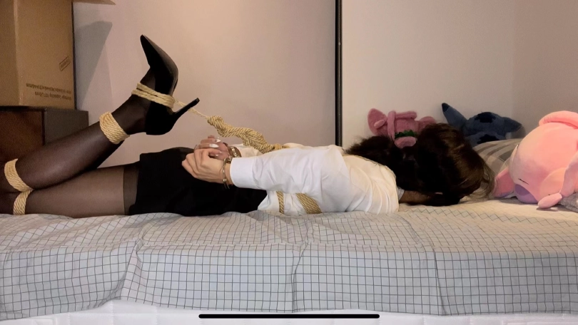 第一部分是肉丝+白色高跟,第二部分是OL+黑丝(绑的比较紧)。床上驷马放置挣扎。