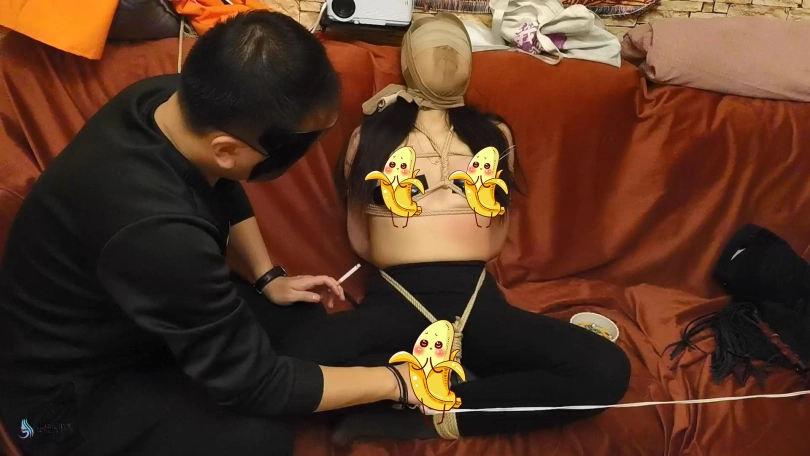 脱掉胸罩,上身日式紧缚,双腿交叉团缚。这样绑在沙发上,让她动弹不得。拿出两个跳D,分别用胶带固定在她胸上两个点。下面用快了棒刺激。嘴里塞进了一整条丝袜。再用一条套在她的头上。这样刺激她时只能发出微弱的“呜呜”声。打开开关,三点齐震,强烈的刺激感瞬间袭遍全身。这还没有结束,用鞭子用力的抽打她的肚子。很快肚子就被抽红了。M奈何被这种姿势捆绑无法移动,又被不断忍受着强烈的刺激,真是痛并快乐着。不断“呜呜”挣扎。。。