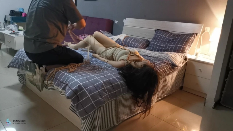 【JS】艾可 全身紧缚后手观音驷马胶带封嘴肉丝性感连衣裙
