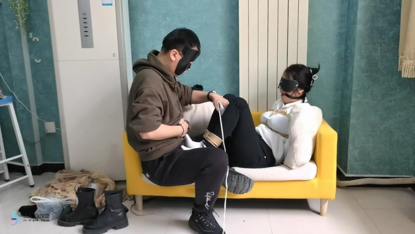 【JS】日式短靴白棉袜口球堵嘴鞭打口水玩足快乐棒刺激