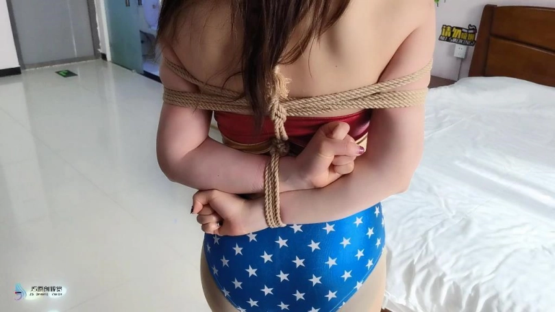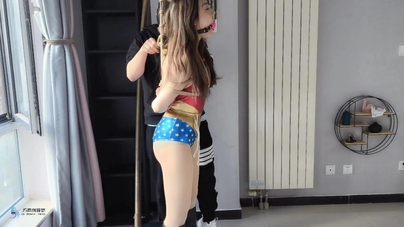 【JS】【新模首秀】【艾菲】《诱捕神奇女侠》胸大无脑的女侠被魔法绳束缚,受尽折磨口水超大口球跳D