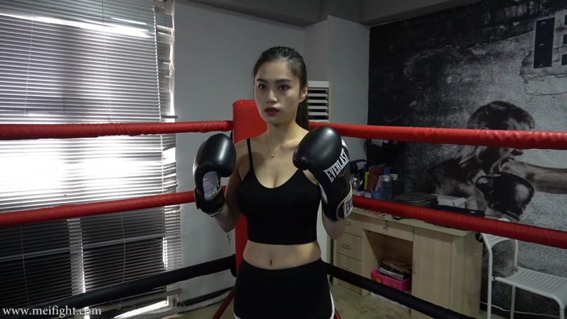 Lexin and Ling put on their mouthguards and began a boxing match. Their offense was very proactive. They tried to defuse each other‘s attacks with body to body clinch...