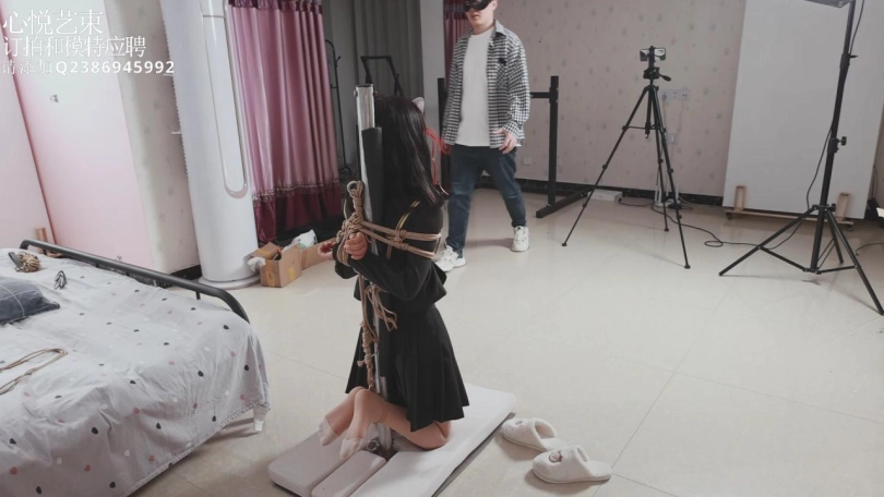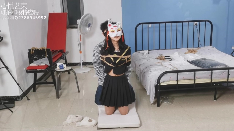 【心悦艺束】肉丝可爱小狐狸被日式后高手束缚在铁柱子上面,吊起双脚挠脚心,腋下,腰部。小家伙是真的很怕痒啊hiahiahia