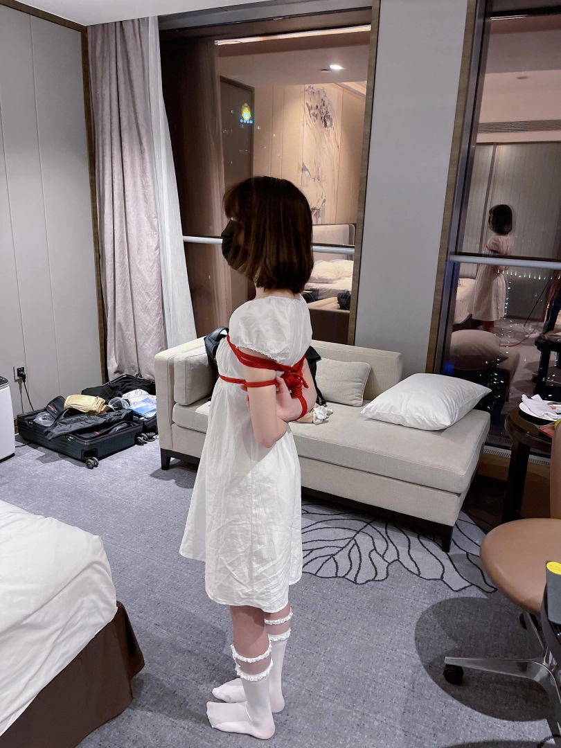 把茶茶用驷马的姿势绑住,命令茶茶趴在地上来一个折腿驷马。