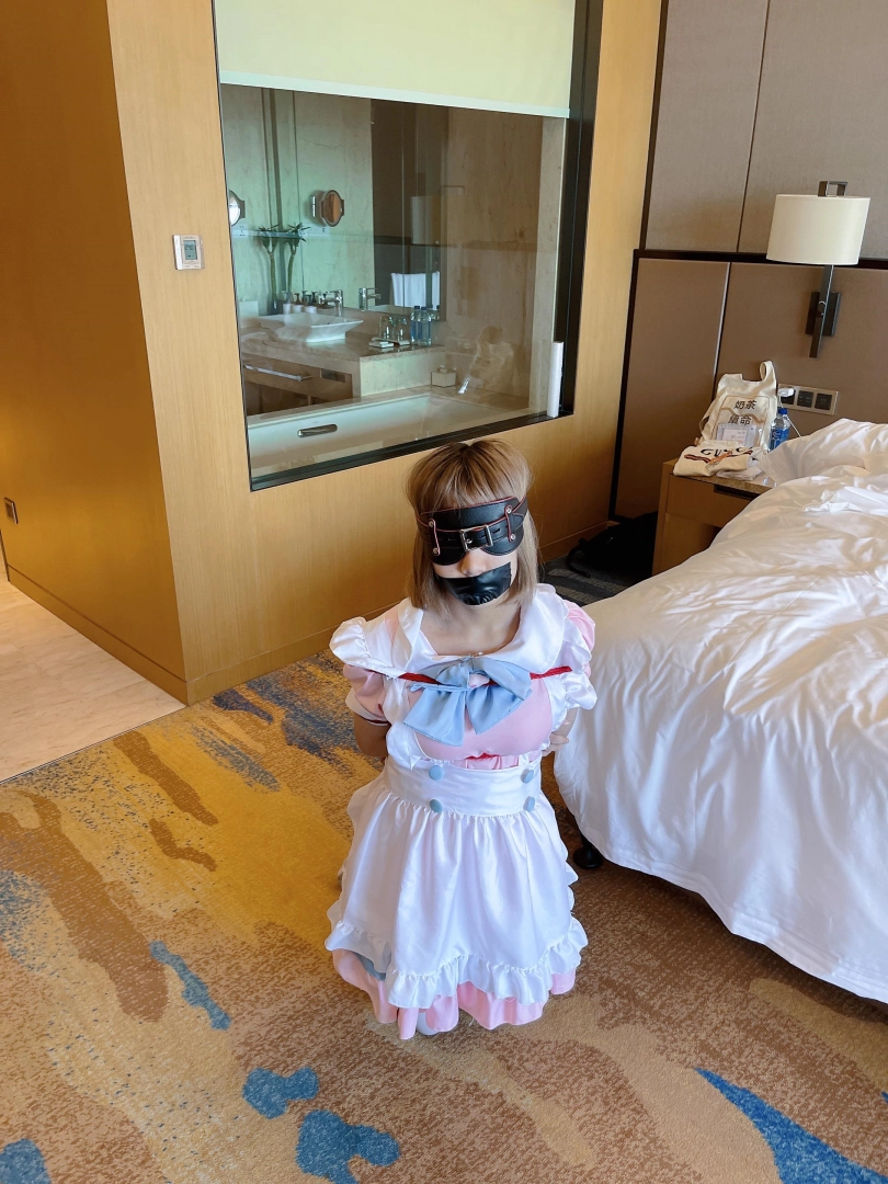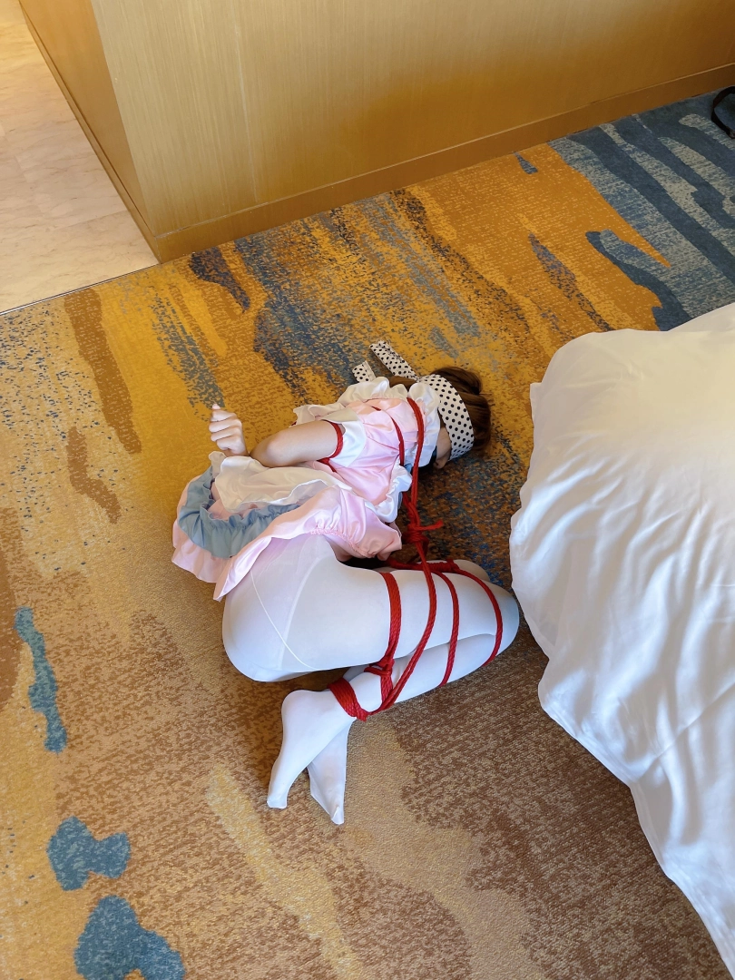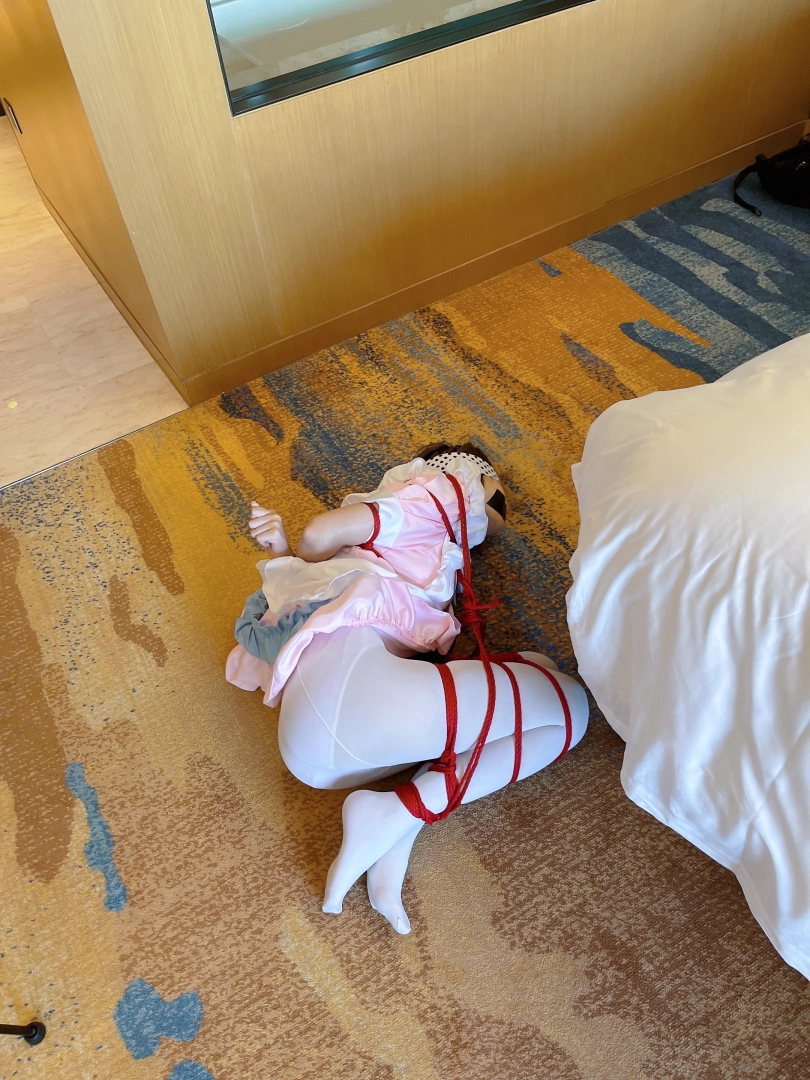 模特挣扎超级努力,用团缚的姿势在地上移动了很远~几乎可以说是蠕动了~但是...会不会成功呢~