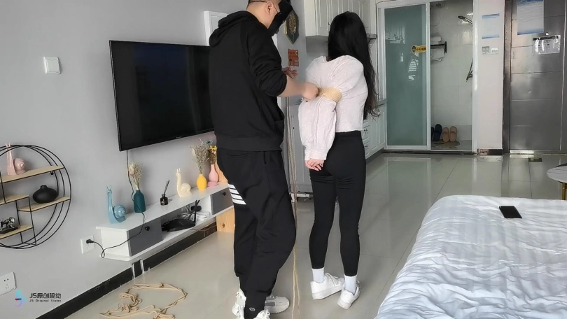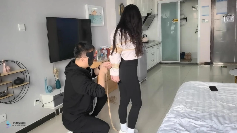 【JS】【曼曼】【意籍华人】超紧直臂捆绑绳脚镣