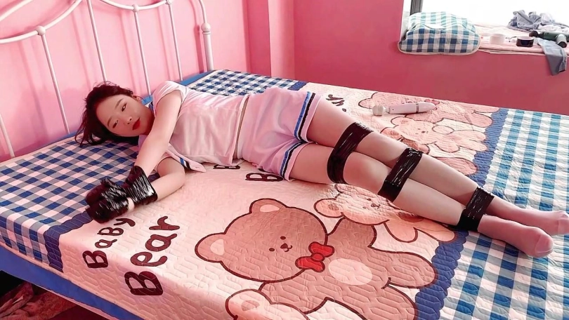 老公上班去了,把老婆双脚,双手用胶布封住,还电话遥控老婆在家用KB的双手玩按摩木奉并达到gc。下班回来后要检查,没有完成任务,晚上就不喂饱老婆。