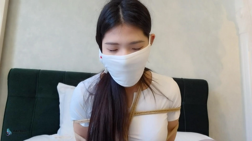 这次是团缚,用一双棉袜塞进玖念的嘴里,外面用绷带缠绕防止她吐出来。在带上口罩,看着脸上的朦胧轮廓,有一种神秘诱惑的感觉。眼睛也是要蒙住的。脱掉的她一只白面袜。不断的挠她的脚心,亲吻她的脚丫。用快乐棒不断刺激着她的yin部,玖念只能不断发出“呜呜”声,扭动着身体反抗着。。。
