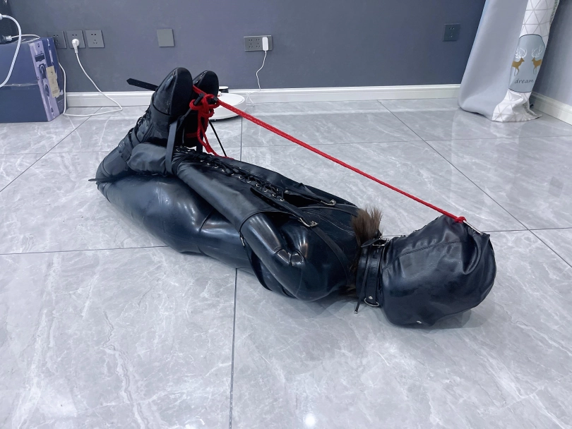 1.此时的茶茶已经被拘束成一个乳胶肉块、动弹不得,别说站起来了,连挣扎都别想。给茶茶设立解脱条件:旋转180度掉头成功或自己解开拘束,失败则惩罚。