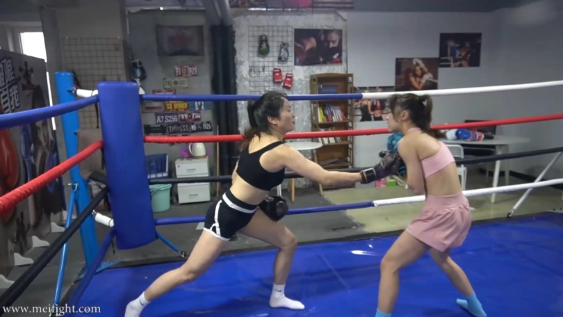This was not a fair boxing match. As a professional boxer, Tina‘s opponent, yiyin, was a girl who can‘t box at all. As long as Yiyin can hold on for 30 minutes without being knocked out, she can win the prize. Tina didn‘t want to end the game so soon...