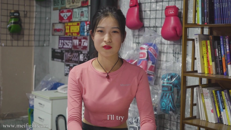 Chui is a novice fitness coach. She has a great figure. She is going to challenge a boxer, Yajun, for a $10000 prize. Yajun is a proud boxer. She looks very strong as a lady. She looks down on Chui very much.