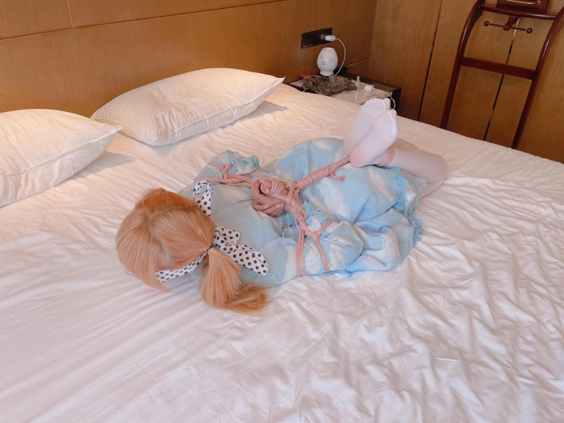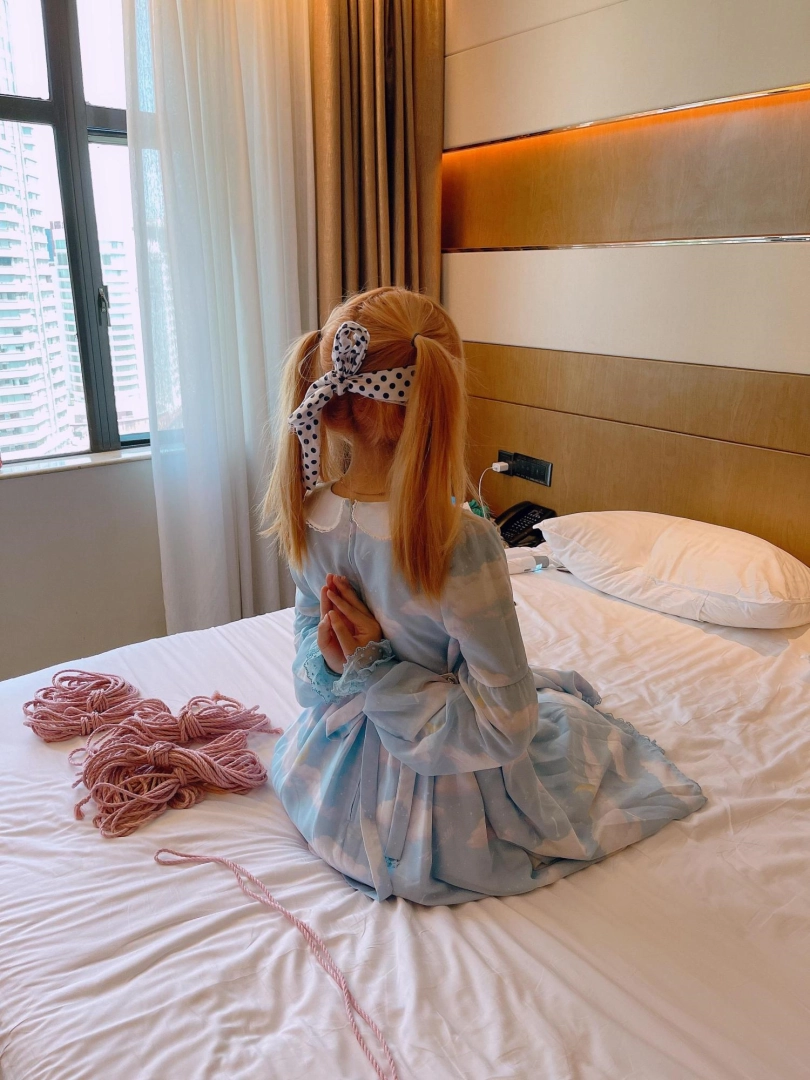 让茶茶穿上白丝和Lolita,结结实实的绑个后手观音,加上多层绳子带来的牢固驷马,茶茶的白丝脚底就乖乖翘起摆在人面前,随意玩弄啦~