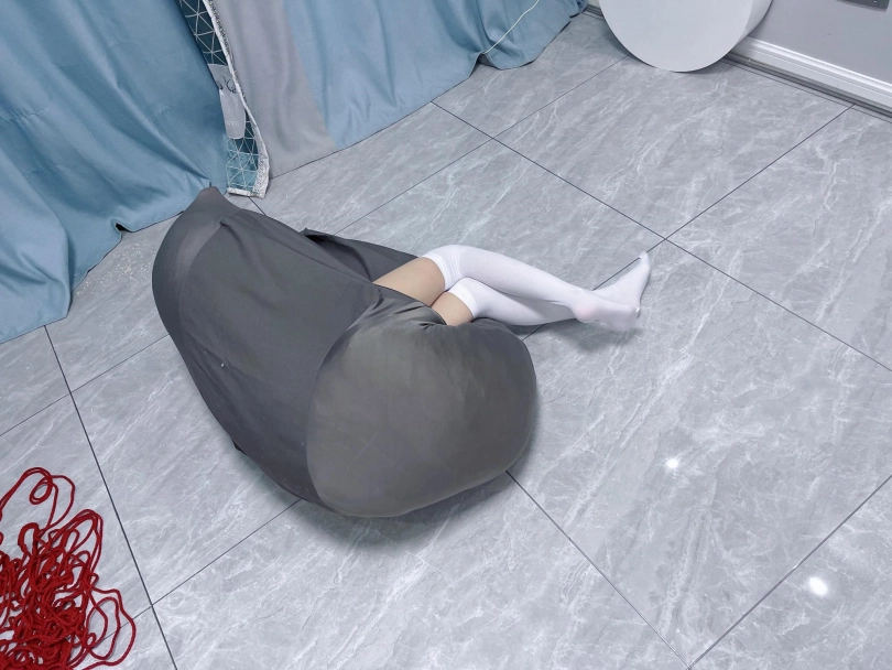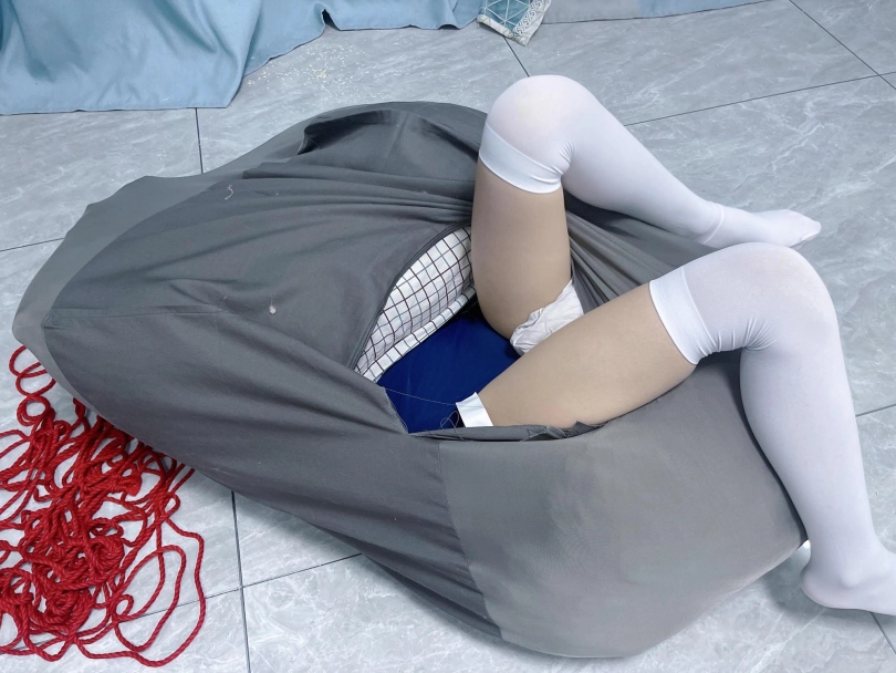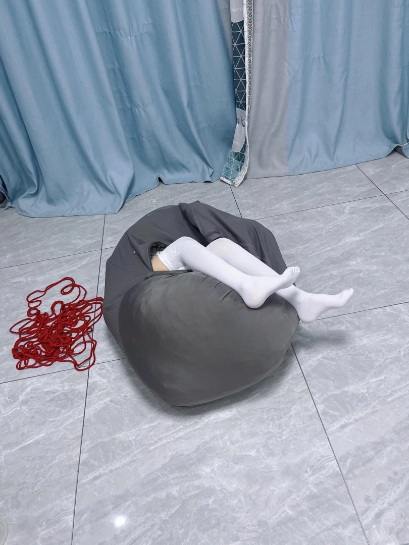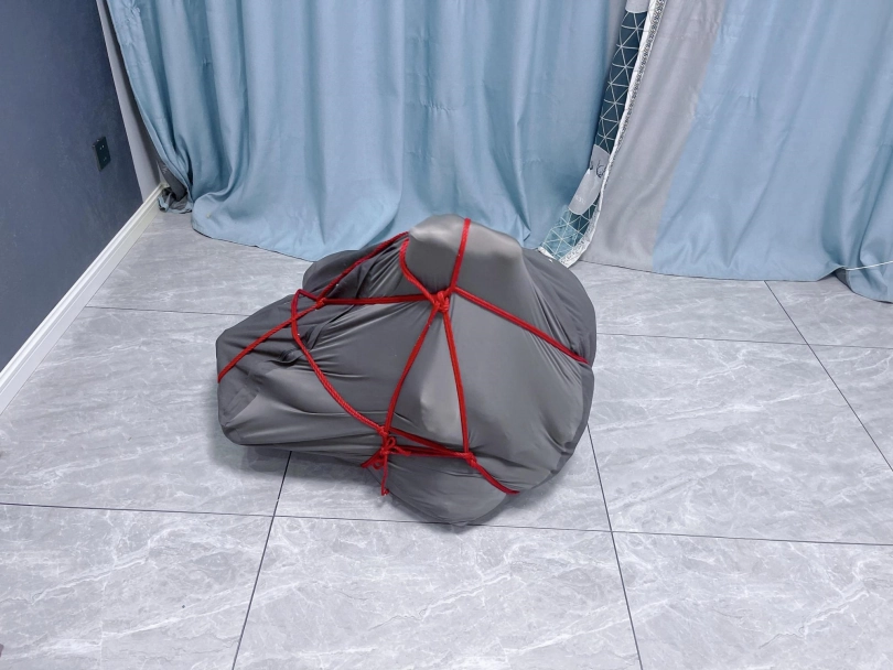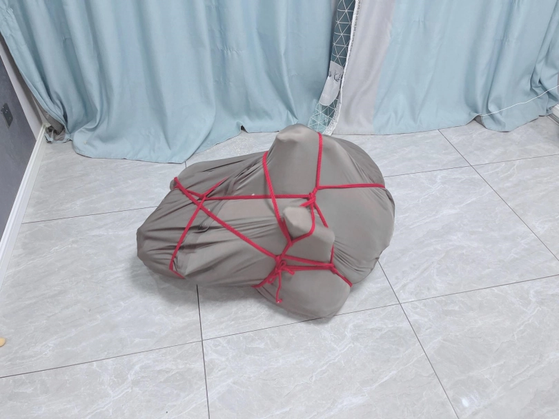 内容:把茶茶双手绑好后,用三床被子卷起来包裹好塞进懒人沙发套里,然后用绳子捆扎。命令茶茶自行脱出。茶茶需要从三层棉被里钻出来后再从沙发袋里破带而出。