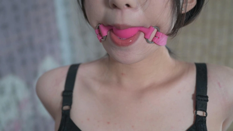 【撒琅制造】高挑妹子挺起腰杆镣铐固定--内衣、口球、棉袜、TK、尾巴解禁!