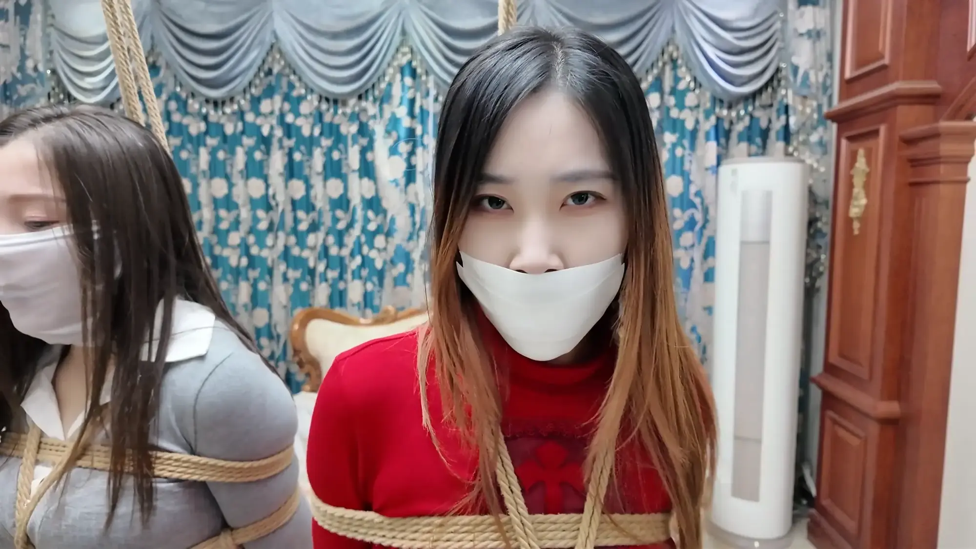 她们只能难过的呜呜抗议,羞耻的忍受着这一切...