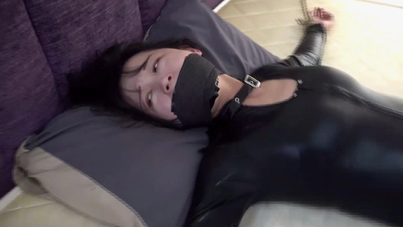 被欧式驷马捆绑臭连裤袜塞嘴套头的关玲呜呜闷哼扭动身体奋力挣扎着,可是怎么挣扎始终都是无济于事,最终她减小挣扎幅度在黑暗中喘息着,反思自己的大意,期待男朋友赶快回家把自己解放。