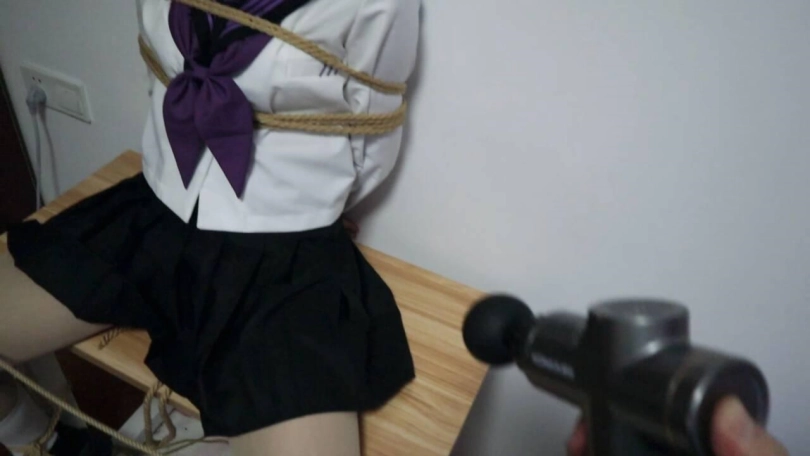 【领玥】紫水手服的少女被死死绑在桌子上,双脚被绑在桌子腿上,在玩具和马鞭的双重打击下,一边挣扎一边哭喊着你放过我吧!