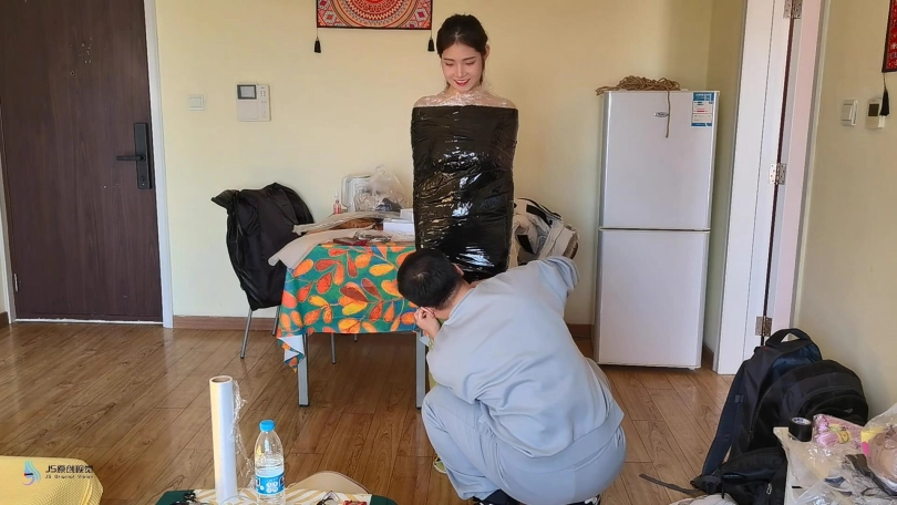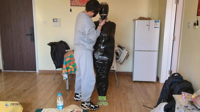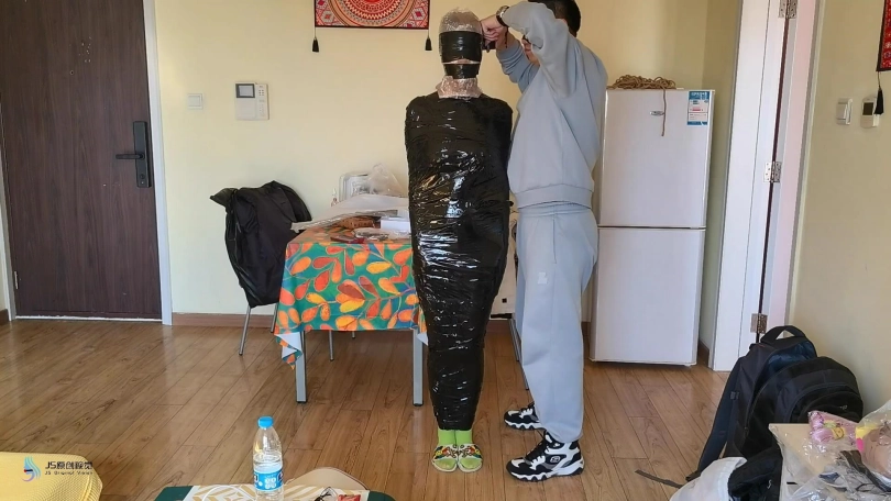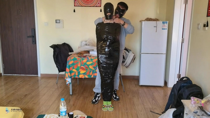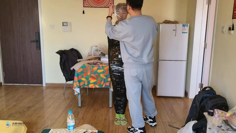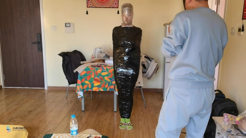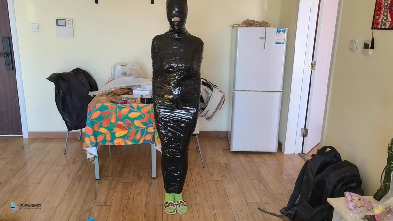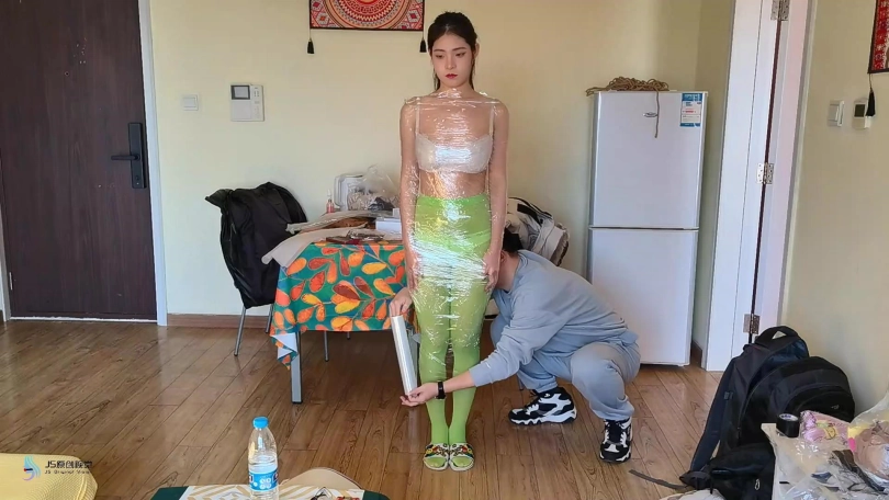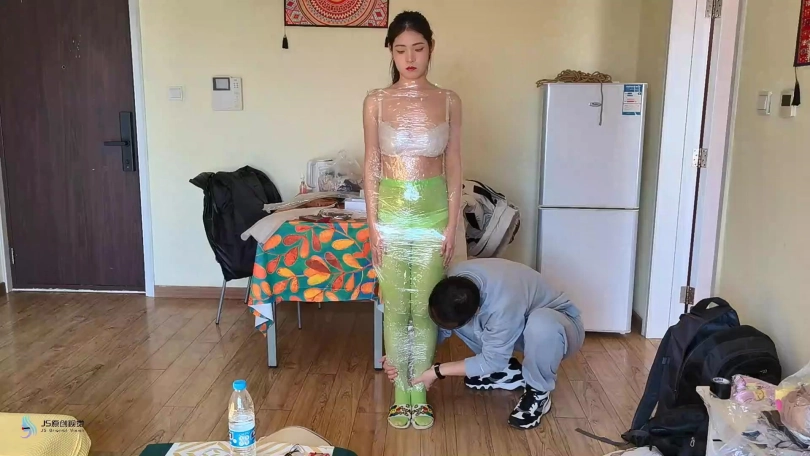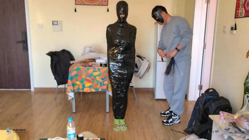 【JS】大美女【玖念】保鲜膜胶带木乃伊游戏鞭打彩色丝袜头部严密包裹