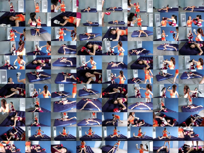 Elsa (Brown) vs Helen (Orange) fights each other in a boxing match. Whoever scores 3 knockouts first will win. Elsa gets the first 2 KOs but Helen makes a comeback. Elsa after getting 2 devastating KOs from Helen has lost a lot of stamina and she easily is beaten by Helen. Helen wins but she is not letting Elsa get away that easily. Helen starts the beating on the poor Elsa`s lifeless body and humiliates her with a dominant victory pose.