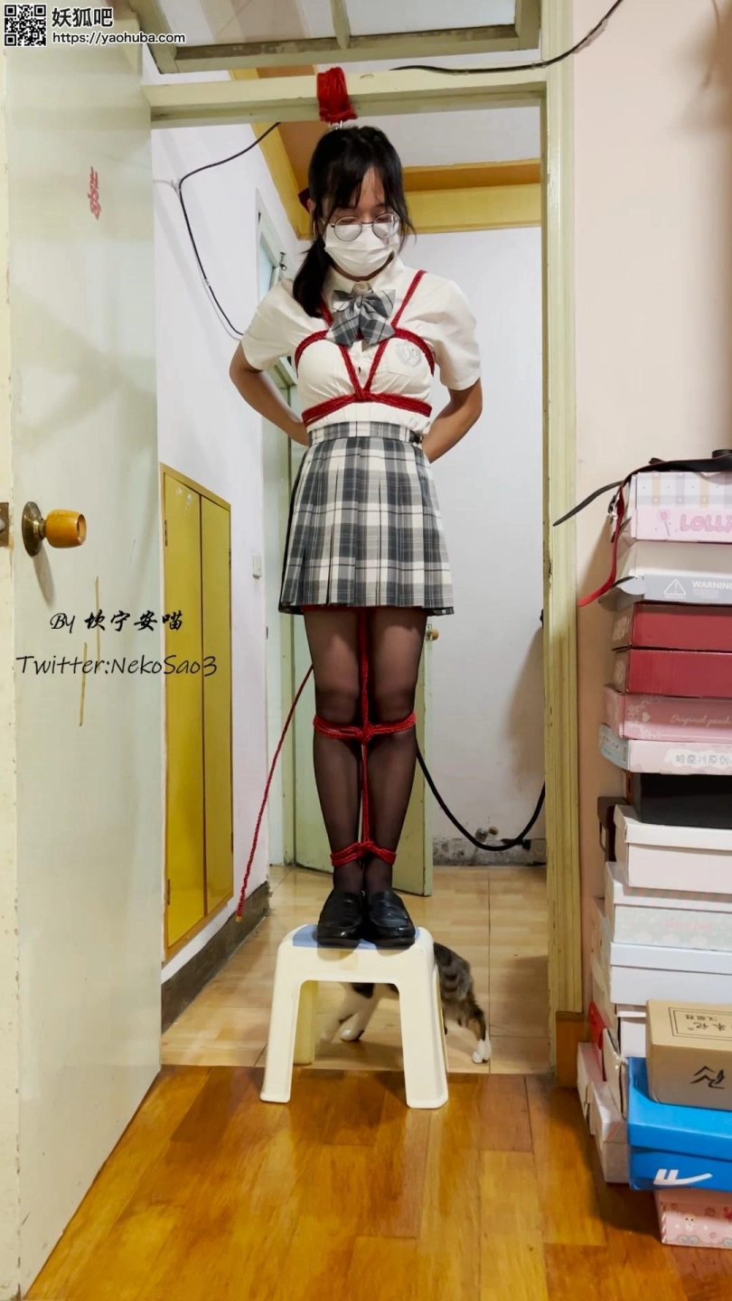 【坎喵】绝望的自缚-黑丝JK直臂并腿悬吊