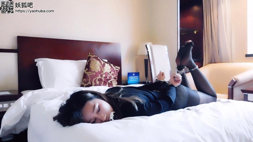 妹子一个人在家,看到了床上的镣铐,心想玩点刺激的事情,于是,撕开丝袜,白袜子堵嘴,自己把自己锁成驷马铐,手腕、脚腕、脚趾锁住,把钥匙放在身边。妹子先是自己这样开心的玩了一会,各种扭动。妹子玩够了想自己解开。扭动身体用手来够,结果把钥匙弄下了床。这下就惨了,妹子害怕紧张了,不断挣扎,不停喊叫。