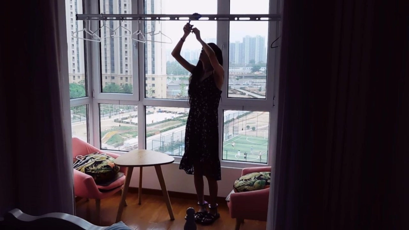 安艺真的是大长腿美人,不过似乎是个冰美人哎,冰美人和镣铐更配哦!!!女神独自在家寂寞了,竟然在窗前晾衣杆上玩镣铐自缚,双手吊起来,结果钥匙掉地,自己解不开了哈哈哈!!!太傻了!!!还被合租的男室友发现了,这下可有的玩了哈哈哈!!!
