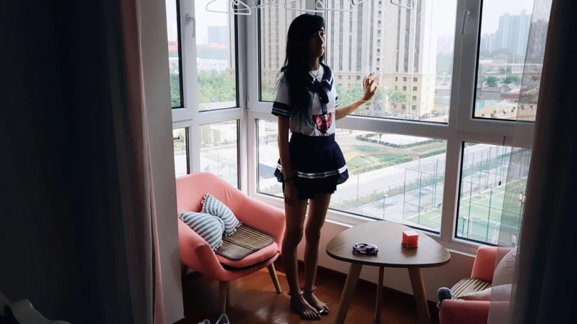 【趾间艺束】安艺窗前镣铐玩耍 手铐脚铐脚趾铐 水手服小白鞋棉袜
