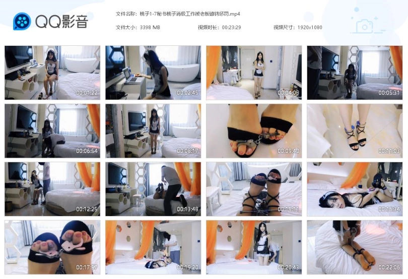 老板来视察,发现秘书穿着拖鞋在工作,很生气,没收了她的拖鞋,被要求换成高跟鞋。然后借此机会,老板又批评了秘书,给她戴上脚镣,强制在椅子上办公。秘书干了一会,想偷懒,起来下地走走。老板回来了,发现秘书没好好工作,解开脚镣,锁上脚铐、链子脚趾铐,让她好好工作。秘书干了一会,不想干了,下地走了几步。又坐下,索性趴桌子睡了。老板回来检查,发现又不好好工作,十分生气,把秘书弄到床上,驷马镣铐,塞入[手动滑稽],走了。秘书挣扎,认错了,请求放过。老板仍旧十分生气,解开脚趾铐脱下高跟鞋,解开连接手脚的手铐,让妹子跪下,再锁上,让妹子跪在床上反思。秘书挣扎,哭了,请求放过。