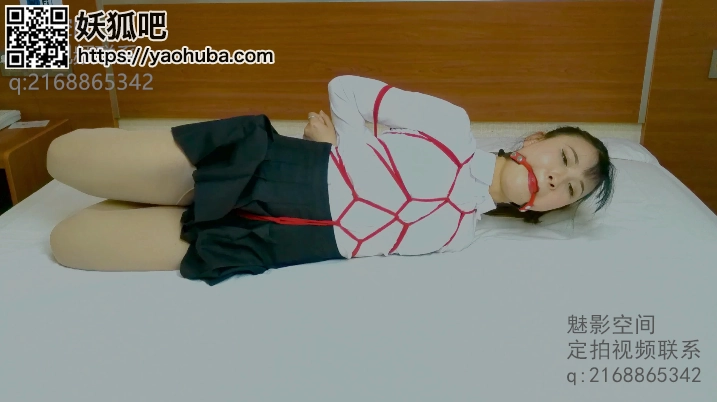 【魅影空间】龟甲缚,后手缚,在带一个性感的口球,肉丝高跟的小美女,被放任自己挣扎