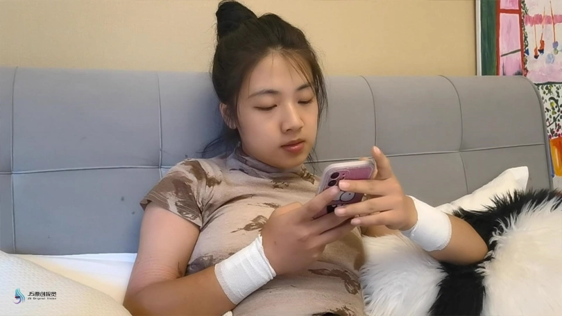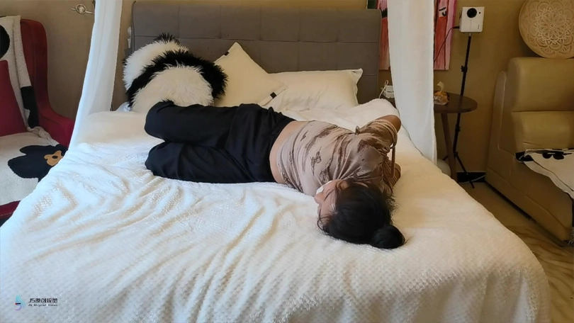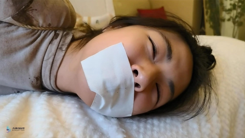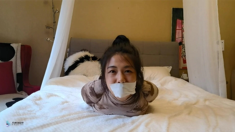 女孩回到家中,[X_X]睡觉。但她忘记关严了房门。一名歹徒悄悄的进入房间,将女孩挟持并把她手脚捆绑起来,嘴巴封上胶带。歹徒找了一张银行卡,在问出密码离开前。他将女孩重新捆绑,把女孩绑成了一个超紧的驷马姿势,然后离去。女孩无力的挣扎着。经过一段时间的努力,终于挣脱了束缚,并报了警。。。