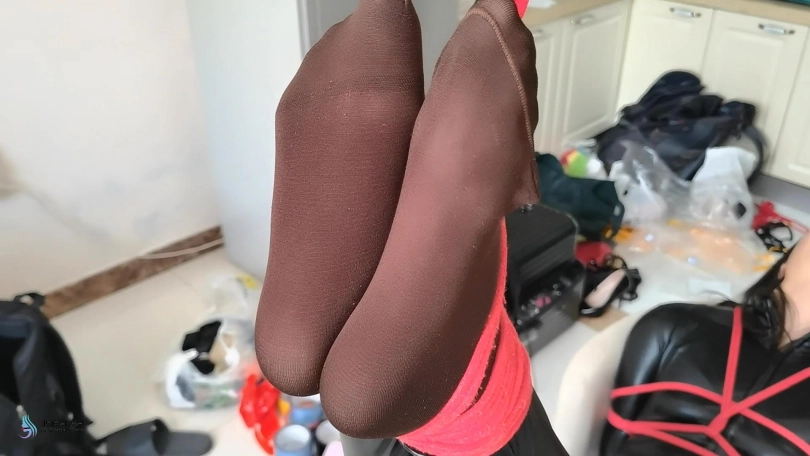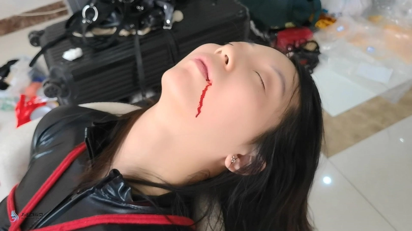 人贩脱掉诗彤的靴子,将她的双脚捆绑起来,并高高的吊起她的丝袜脚。不断的挠她的脚底,亲吻玩弄她的美足。在不断的折磨下,诗彤终于受不了了,她说出了幕后老板是谁。本以为人贩会放过她。但失去价值的诗彤,最终被人饭开枪解决掉了。。。