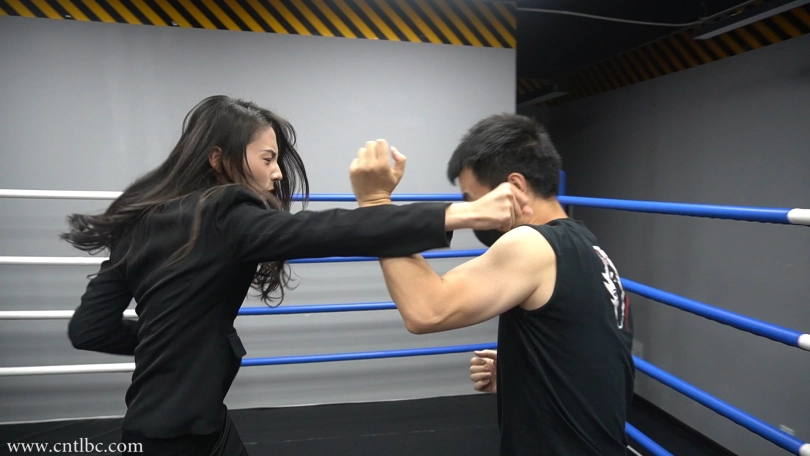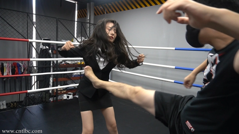 Ting participated in a brutal challenge. In order to win the final prize, she had to wear inconvenient professional attire and face much stronger opponents, and hold on for 30 minutes without being knocked down...