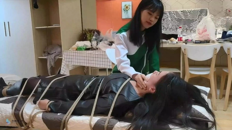 女白领在完成工作后感到不舒服,她来到了附近的一家按摩会所。但她不知道这个技师有特殊癖好。没错,她喜欢玩捆绑游戏。就在刚才技师还在床上捆绑着自己的双脚练习。技师发现女白领穿着很性感,一个邪恶的想法在她内心产生。她想抓住这个白领做自己的玩伴。于是她谎称店里新到一款精油,吸了会感觉很舒服,女白领没有防备的答应了。